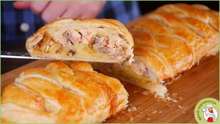 Отличный рецепт заливного пирога, который готовится менее, чем за час. В данном рецепте вместо семги можно использовать любую консервированную рыбу. Если вы хотите, чтобы пирог получился наиболее нежным, в начинку кладите только нарезанную семгу и заливайте рыбу вторым слоем теста. Семга с сыром — также неплохое сочетание начинки в данном пироге. Этот заливной пирог можно готовить с любой начинкой, даже с овощной или мясной, по вашему вкусу. Я люблю по-быстрому делать его с консервами.