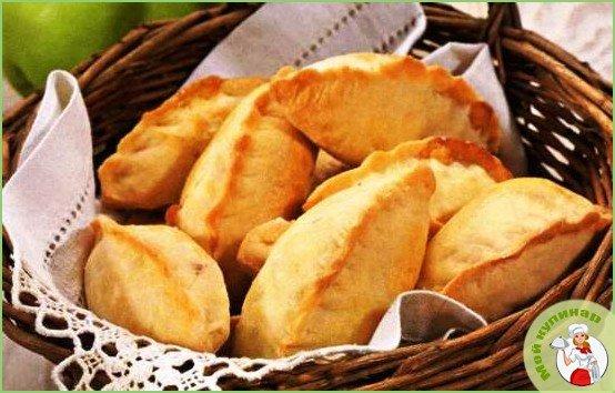 3. Заготовки выкладываем на застеленный бумагой для выпечки противень (бумагу можно смазать слегка маслом). Желательно каждый пирожок перед запеканием проткнуть в пару раз зубочисткой. Выпекаем пирожки 20-25 минут при 180 градусах в духовке. Готово!