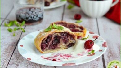 7. Выложите штрудель на застеленный пергаментом противень и отправляйте на 45-50 минут в разогретую до 180 градусов духовку.