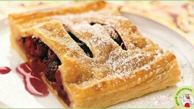 Нежное рассыпчатое слоеное тесто и начинка из яблок и большого количества специй делают это блюдо незабываемо вкусным. Приготовить этот пирог несложно. Сейчас лето, пора свежих фруктов и ягод. Начинку всегда можно изменить по вашему вкусу.