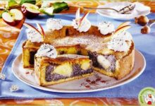 1. Испеките 5 небольших коржей по любимому рецепту. Остудите их как следует и разрежьте так, чтобы одна половина была чуть больше. Выложите срезом вниз и перемажьте кремом. Внизу 5 коржей поменьше, сверху — 4 побольше. 1 половинку оставьте.