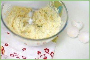 5. Теперь смешаем между собой сметанную и масляную смеси, немного взобьем вместе, заливаем полученной смесью корж.