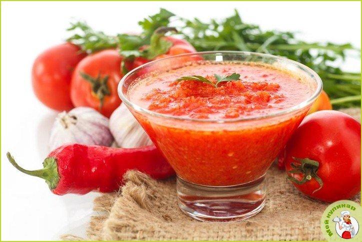 1. Огурцы нужно предварительно тщательно вымыть и замочить в холодной воде на час-два. Тем временем измельчим чеснок и острый перец (без семечек), помидоры перетираем в пюре.
